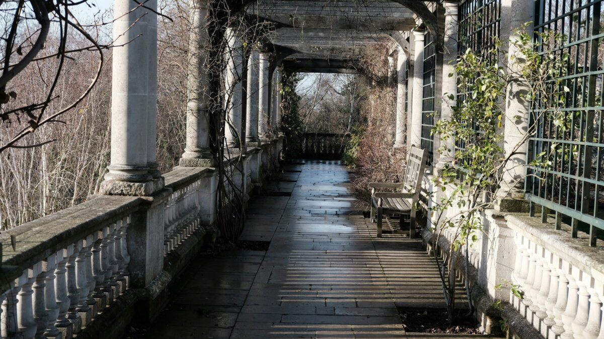 In spring the wisteria blooms purple across the entire length of the walkway and the effect is the sort of thing that makes people stop walking and just stand there. In summer roses replace the wisteria. In autumn the whole structure turns gold. In winter the bare stone and timber have their own austere charm. A small lily pond sits at the centre of the Hill Garden below, overlooked by benches that are almost always occupied by people who appear to have no intention of leaving soon. The entrance is tucked behind a gate near Jack Straw’s Castle on the northern edge of Hampstead Heath. It is free, open daily from half past eight until dusk, and almost nobody who visits it does so only once.